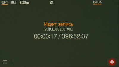 Запись производится от микрофона, находящегося на верней грани. Управление очень простое, нажать на кнопку – начинается запись, еще раз нажать – останавливается. Можно выбирать качество записи в формате MP3 - 64 кбит/сек (низкое качество), 128 кбит/сек (среднее качество) или 192 кбит/сек (высокое качество). Также есть возможность автоматической активации или остановки записи при наличии или, соответственно, отсутствии звуков.