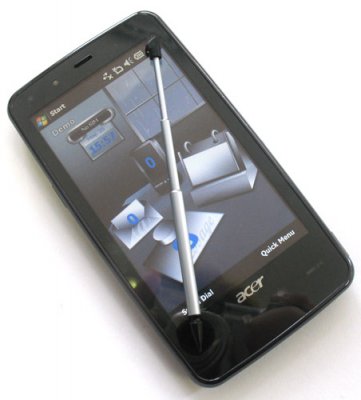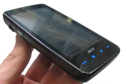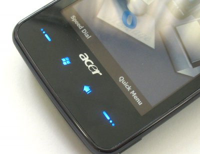 На передней панели присутствуют всего четыре кнопки, а именно: две кнопки для работы с вызовами, кнопка вызова меню Пуск и закрытие активного окна. Данные кнопки сенсорные и имеют ярко-синюю подсветку, которая в темноте режет глаза. Подсветка активируется только при нажатии на одну из кнопок на несколько секунд. Нажатие кнопок сопровождается не очень сильной вибрацией. Клавиши запуска меню Пуск и закрытия активного окна программируемы. К сожалению, в Acer F900 отсутствует навигационная клавиша. Нет в данном коммуникаторе и колесика прокрутки, это действие придется выполнять при помощи пальцев или стилуса.