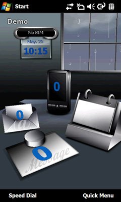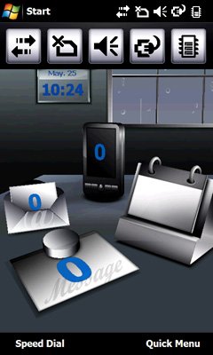 Оболочка рабочего стола Acer F900 пока что представлена в демонстрационной версии, но на момент выхода данного аппарата в продажу в ней много чего изменится. Графически она выглядит не очень, но зато оригинальность и функциональные возможности уже можно оценить. Рабочий стол, по мнению данного производителя должен представлять собой, рабочий стол. Поэтому на дисплее отображен обычный рабочий стол со стенами, окнами и полкой. Рабочий стол полностью не помещается на дисплее, поэтому вам придется использовать горизонтальную прокрутку. На рабочем столе, можно расставлять различные предметы, конверты с письмами, календари, фоторамки и так далее.