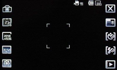 Интерфейс камеры Acer F900 довольно прост. Видоискатель занимает практически весь дисплей, слева и справа находятся значки различных функций – разрешения снимков, настройки вспышки, место для хранения фотографий и так далее. В левом верхнем углу находится выбор режима съемки. Меню настройки можно вызвать при нажатии на кнопку в форме шестерёнки. В левой части экрана появляются иконки настроек, по большей части те же самые, что и при съемке, а в правой – список доступных опций.