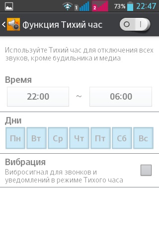 Настройки дают возможность отключать уведомления в конкретное время суток и в определенные дни недели. Для этого нужно воспользоваться режимом «тихий час».