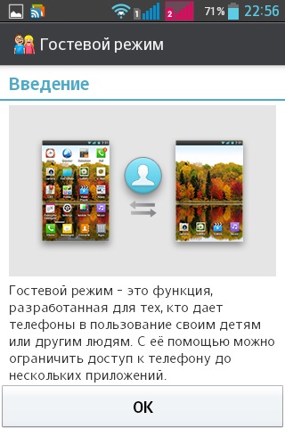 Замечательная функция гостевого режима разрешает владельцу телефона не беспокоиться о том, что кто-то посторонний может увидеть его секретную информацию или сбить личные настройки (в случае с маленьким ребенком). Эта функция предусматривает установку двух графических кодов разблокировки экрана. Один (администраторский) код знает только владелец устройства. При вводе другого (гостевого) кода на рабочем столе появляются только те папки и приложения, который владелец отобрал для показа посторонним пользователям.