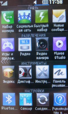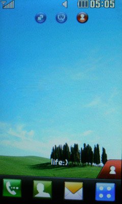 Внизу под дисплеем по традиции расположились три кнопки: правая и левая – для работы со звонками, центральная – для быстрого доступа к меню. В быстром меню пользователь может добавлять и удалять ярлыки на свое усмотрение. Здесь дается полная свобода выбора.