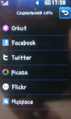 В подразделе «Связь» сосредоточились смс и ммс менеджеры. Кроме того, здесь пользователю становится доступным клиент электронной почты. Подменю на этом не ограничивается. Далее мы видим пакет «Социальные сети», предлагающий несколько популярных «социалок»: Face Book, Twitter, Picassa, Myspace.