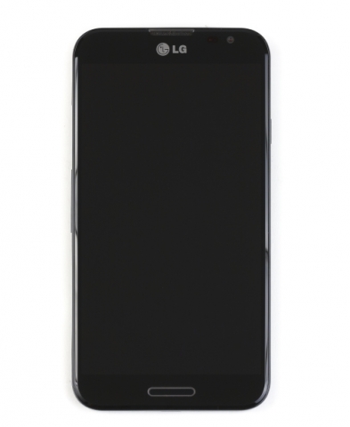 На лицевой панели LG Optimus G Pro находятся дисплей, фронтальная камера, датчики освещённости и приближения, разговорный динамик, логотип компании-производителя и три кнопки: одна – аппаратная клавиша «Домой», расположенная по центру) и две – сенсорные клавиши «Назад» и «Меню» (по бокам). Средняя механическая кнопка окружена LED-подсветкой, которая служит индикатором различных событий (пропущенных звонков, разряженной батареи и так далее). Сенсорные клавиши не прорисованы, поэтому заметить их можно только когда работает подсветка. Кнопка «Домой» имеет тугой ход, поэтому случайно нажать её практически невозможно.