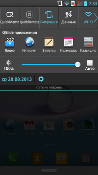 Функция QSlide позволяет работать с двумя приложениями на одном экране одновременно. Например, пользователь может набирать текстовое сообщение и одновременно смотреть видео. Приложения могут открываться одно поверх другого, можно изменять степень их прозрачности. К сожалению, список программ, которые могут работать в таком режиме, ограничен.
