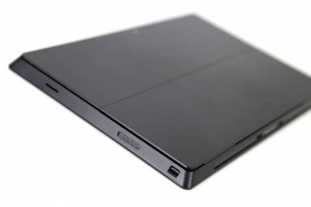 На правой боковой панели девайса находятся магнитный разъём для зарядки аккумулятора, MiniDisplay Port 1.2 и слот для карты памяти microSD. Посредством разъёма MiniDisplay Port 1.2 можно подключать планшет к монитору, телевизору или проектору для вывода изображения. Для многих пользователей было бы намного удобнее, если бы в аппарате имелся отсек для полноценных SD-карт, но его нет.