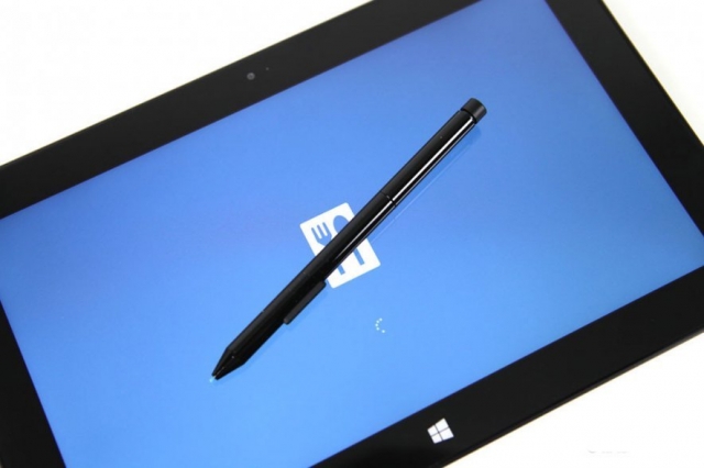 Комплектный стилус крепится к планшету на магните. Никакого специального чехла или отсека для него не предусмотрено, поэтому его можно легко потерять. Выполнен стилус из глянцевого пластика. С его помощью можно управлять планшетом, рисовать на нём и осуществлять ручной ввод текста. Толщина линии, начерченной стилусом, зависит от степени нажатия.