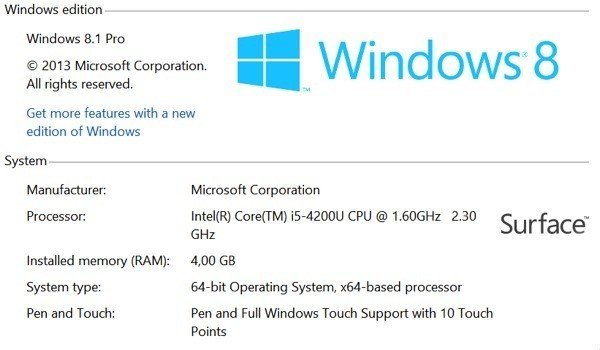 Как уже упоминалось выше, функционирует Microsoft Surface Pro 2 под управлением Windows 8.1.