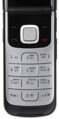 Навигационный блок имеет минимальное количество элементов – это клавиши для работы с вызовами, четырех позиционная навигационная кнопка с вписанной кнопкой подтверждения выбранного действия и софт-клавиши. При длительном удержании клавиши звездочка происходит запуск FM-радио.