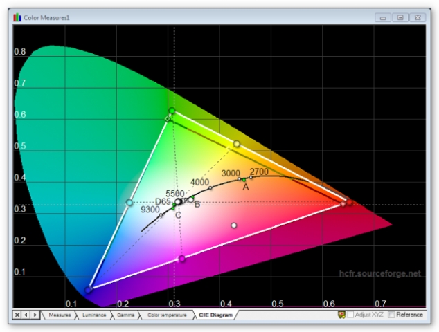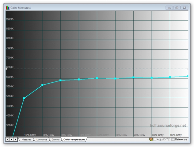 Цветовой охват в режиме sRGB составляет 99,4%, а в режиме Adobe RGB данный показатель составил 74,8%. Значение гаммы составляет 2.2, но имеет некоторые снижения в темных участках. Цветовая температура немного занижена, что приводит к незначительному и еле заметному холодноватому оттенку картинки.