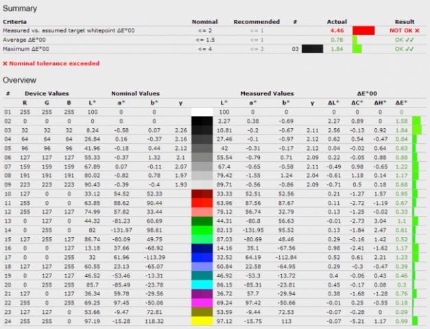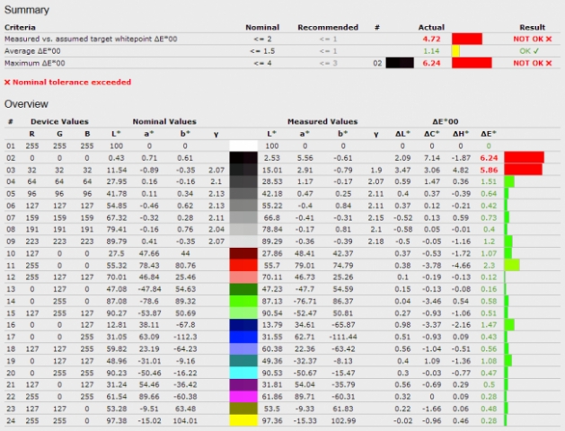 Результаты точность цветопередачи в режимах sRGB, Adobe RGB и "Пользовательский" (результаты последнего режима приведены после калибровки):