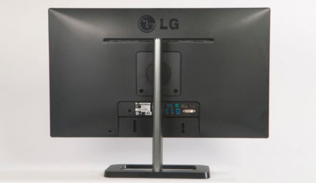 Поставляется монитор LG 27EA83 вместе с достаточно функциональной массивной подставкой сделанной из металла, позволяющей не только регулировать угол наклона дисплея, но и его высоту, а также поворачивать его в портретный режим и обратно. Единственное чего не позволяет подставка это поворачивать дисплей вокруг его оси. Некоторым пользователям регулировка положения дисплея по высоте может показаться небольшой, так как в самом низком положении расстояние от нижней рамки до стола почти восемь сантиметров. Подставка монитора LG 27EA83 крепится к стандартному VESA-креплению, которое также позволяет повесить монитор на стену. Однако интерфейсная панель расположена так, что если монитор будет висеть на стене, подключения к монитору проводов будет достаточно затруднительным. К тому же под интерфейсной панелью посредством особой системы крепления установлен внешний блок питания, немного выступающий над уровнем тыльной панели монитора.