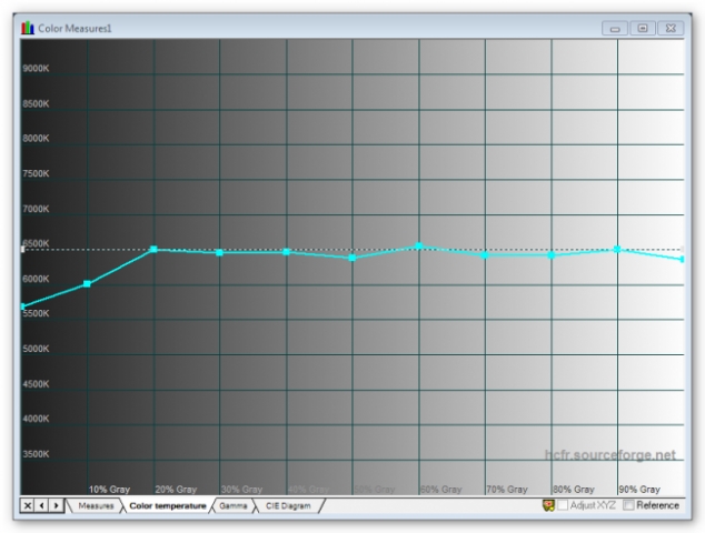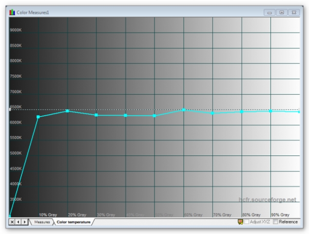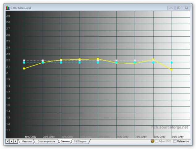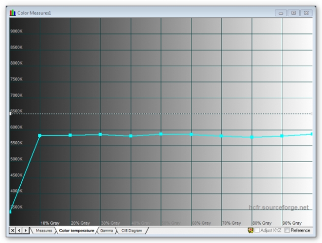 Цветовая температура, цветовой охват кривая гаммы (по шкале яркости) в режиме sRGB:
