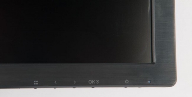 Кнопки управления монитором LG 27EA83 сенсорные, они имеют вид небольших наплывов и расположены в правом углу нижней боковой панели. Обозначения кнопок управления нанесены краской серого цвета в правом нижнем углу фронтальной панели. Обозначения хоть и не подсвечиваются, но достаточно читабельны даже при тусклом освещении. Кнопка питания находится немного в стороне от остальных кнопок управления. Справа от обозначения кнопки питания находится небольшой световой индикатор активности.