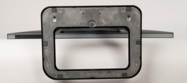 Подставка монитора LG 27EA83 имеет относительно широкое основание, сделанное в виде рамки. Основание рамки металлическое, накрытое матовым пластиком «под шлифованный металл» (таким же, как и рамка дисплея). Подставка имеет прорезиненные ножки противодействующие скольжению монитора по столу. Жёсткость крепления подставки к дисплейному блоку средняя, раскачать монитор не составляет никаких усилий, хоть и стоит оговориться, что амплитуда раскачиваний мизерная. Монитор LG 27EA83 немного покачивается даже при нажатиях на сенсорные кнопки управления.