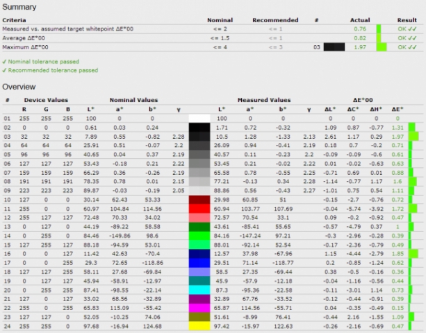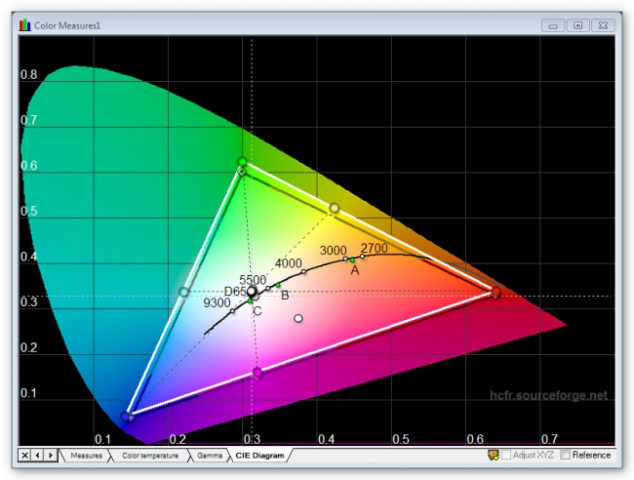 Монитор LG 27EA83 калибруется в заводских условиях, о чем свидетельствует сертификат (отчёт) приложенный к нему. При этом стоит отметить, что калибруется только режим Adobe RGB, но не режим sRGB. Тест показывает, что цветовая температура почти равна идеальному показателю 6500K. Цветовая гамма немного занижена, её значение равно 2.1. Цветовой охват достаточно точно имитирует цветовые пространства sRGB и Adobe RGB, заметен лишь минимальный недостаток в красно-синей области.