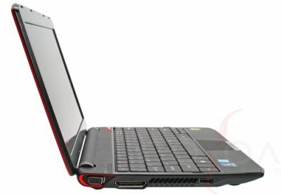 Когда первый раз берешь в руки нетбук, удивляет его покрытие. Оно глянцевое, яркого красного цвета, словно корпус спортивного автомобиля с легендарной эмблемой Феррари в центре. Агрессивности внешнему виду придают комбинированные вставки по бокам, расположенные близко к двум крепящим крышку движущимся шарнирам. Срезанный углы, как в капоте Феррари. Довольно большой экран (11.6" WXGA (1366x768) LED), который мы видим при открытии. Он удобен как при работе, так и при использовании большого набора мультимедийных функций, которыми оснащен компьютер. Расположен он на тонкой крышке, крепящейся к основной части устройства двумя высокими кронштейнами. То есть при поднятой крышке мы можем видеть большой зазор между основной частью, отдаленной от нас частью клавиатуры и нижней частью дисплея. Стильное решение довольно необычно. Но смотреть на это приятно, поскольку переполняет гордость за то, что Вы обладатель именно Acer Ferrari One 200. Угол наклона крышки нетбука не столь велик, как кажется на первый взгляд, но довольно удобен в работе. Его вполне достаточно как для печати как текстового документа, так и для выбора наиболее удачного ракурса при просмотре видео или съемке фотографий веб-камерой.