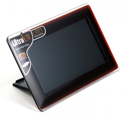 Рамка SPF-87H позиционируется производителем как UltraSlim то есть очень тонкая. Толщина корпуса всего 23 миллиметра, хотя это не самая тонкая рамка в мире но среди модельного ряда компании Samsung это самый тонкий экземпляр. Корпус рамки выполнен из пластика с прозрачной окантовкой по краям. Основная часть корпуса на первый взгляд кажется абсолютно чёрной но ближе к краям она тёмно красная и в компоновке с прозрачными краями создаётся очень приятный эффект псевдо подсветки.