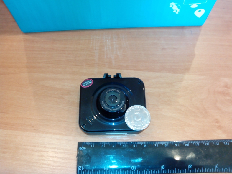 Рассматривая данный видеорегистратор, в первую очередь, стоит учесть его небольшой размер. Такой аппарат можно незаметно установить в автомобиле, например за зеркалом заднего вида, сделать это довольно просто.При этом прибором будет легко и удобно управлять, так как все элементы управления вынесены на заднюю панель. Для того, чтобы Вам проще было оценить габариты устройства, взгляните на фото ниже.