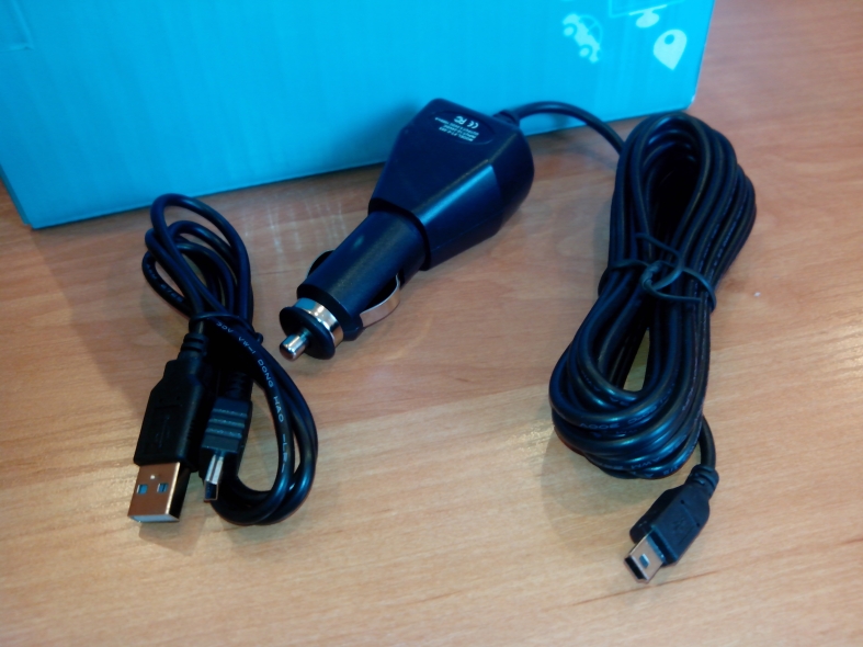 Помимо карты памяти, устройство комплектуется USB-кабелем и автомобильным зарядным устройством. Шнур от автомобильного зарядного устройства достаточно длинный. Это позволяет установить видеорегистратор практически в любом месте в салоне машины.