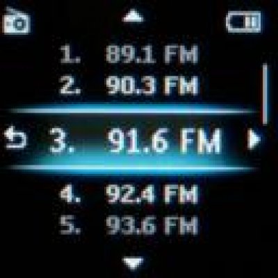 Диапазон FM приемника - 87,5 - 108 МГц. Станций можно сохранить 20, а сканирование диапазона проводить вручную или в автоматическом режиме. Радио передачи можно записывать с помощью диктофона. Записи сохраняются также в формате IMA ADPCM WAV, но уже их битрейд 384 кбит/с. Этого более чем достаточно для качественной записи.