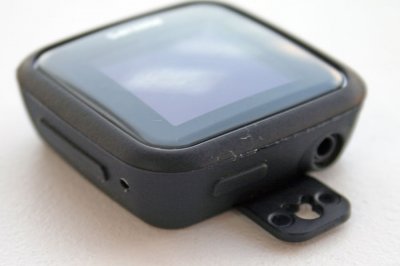 Слева, на боку, расположен ползунок, который отвечает и за включение, и за блокировку плеера. Рядом имеется порт miniUSB, который для защиты от пыли и грязи прикрыт заглушкой. Разъем стандартный, можно применять не только кабель, который идет в комплекте, но и любой другой. На краю находится отверстие для ремешка или шнурка, кому что больше понравится.