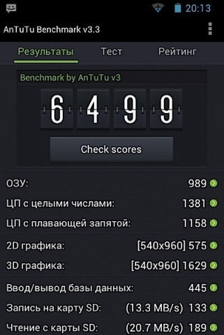 Мощности аппаратной платформы не хватает для энергоёмких современных игр. Это подтверждают и результаты синтетических тестов. В AnTuTu Benchmark аппарат набирает 6499 баллов. В GeekBench – 714 баллов.