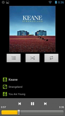 Стандартный музыкальный проигрыватель делит все песни по нескольким признакам: альбомам, исполнителям, жанрам, трекам и плейлистам. Отдельная вкладка отображает недавно прослушанные музыкальные композиции. При воспроизведении песни на экране отображается её название, имя исполнителя, год выхода, наименование и обложка альбома. В нижней части экрана располагаются виртуальные кнопки управления воспроизведением: посередине «Пауза», слева «На песню назад» и справа «На песню вперёд». Под кнопками управления находится ползунок, который отражает процесс воспроизведения трека. Тут же указывается длительность композиции. Музыку можно слушать в смешанном порядке. Одну песню или весь плейлист (альбом) можно ставить на повтор. Управлять проигрыванием музыки можно и при заблокированном экране смартфона.