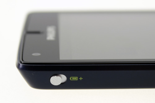 На правой боковине Philips Xenium W737 находятся две отдельные кнопки регулировки громкости. На левой боковине разработчики поместили небольшой металлический рычажок, включающий энергосберегающий режим. На этой же панели аппарата можно увидеть логотип производителя.