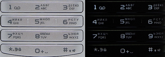 Цифробуквенная клавиатура состоит из 12 клавиш средних размеров, причем разделены они только по горизонтали. Все кнопки имеют небольшой, но четкий ход. При помощи кнопки «#» пользователь может активировать беззвучный режим. Разблокировка экрана осуществляется в два действия: сначала нужно нажать левую софт-кнопку, а затем – «звездочку».