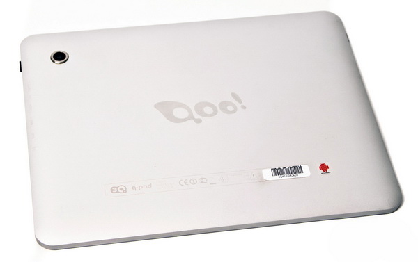 Центр обратной стороны украшает выгравированный логотип «Qoo!», под ним указана информация по сертификации устройства. В углу поблескивает глазок основной камеры. Она обладает неплохим разрешением равным пяти мегапикселям. Кроме того, задняя панель содержит поясняющие подписи возле всех интерфейсов, что будет полезно начинающим пользователям.