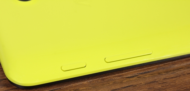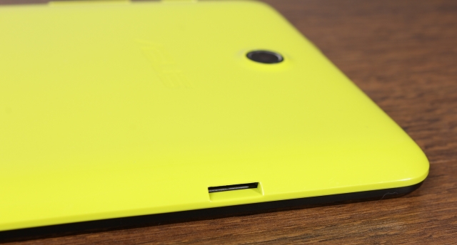 В верхней части тыльной панели находится объектив основной 5-мегапиксельной камеры. Под объективом основной камеры расположен теснённый логотип производителя такого же цвета, как и сама тыльная панель. В нижней части тыльной панели находятся служебная информация, а также большая и длинная прорезь, накрытая металлической решёткой, под которой расположены два стереодинамика.