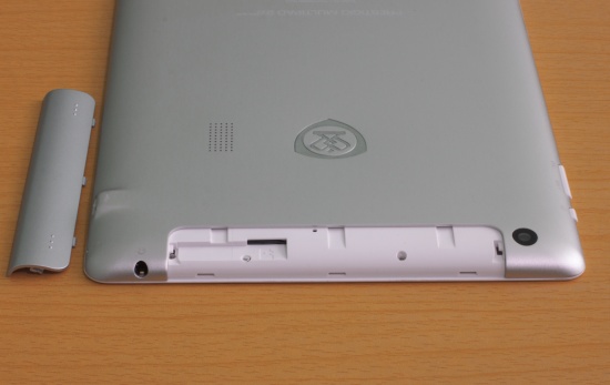 Под съёмной пластиковой вставкой, расположенной в верхней части задней панели, находится слот для карты памяти microSD, а в версии с 3G, рядом располагается слот для SIM-карты.