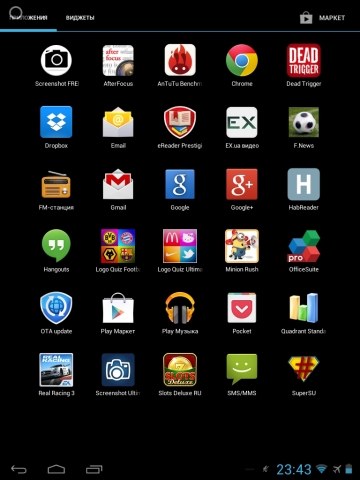 Набор предустановленных приложений позволяет пользователям работать с планшетом прямо «из коробки» без необходимости установки сторонних программ. Разработчик установил в устройстве даже несколько игр, в том числе и знаменитую Angry Birds. Разумеется, владелец аппарата может скачать множество других программ и игр в официальном магазине приложений Google Play.