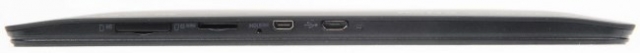 По центру обеих боковых граней расположены две тонкие прорези динамиков акустической системы планшетного компьютера, но судя по тому, как звучит устройство, динамик находится только в правой боковине. В левой стороне верхней боковой грани находится аудиовыход (3,5 мм), а в правой стороне верхней боковой грани расположены круглой формы кнопка питания/блокировки, такого же размера и формы кнопка убавления громкости мультимедийного динамика, а также круглая кнопка увеличения громкости размером чуть больше, чем кнопки уменьшения громкости и питания/блокировки. На нижней боковой грани планшетного компьютера Wexler Tab 7iS находятся световой индикатор заряда, порт microUSB, видеовыход microHDMI, слот для карты памяти формата microSDHC и слот для сим-карты формата microSIM.