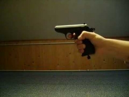 Перед первым выстрелом нужно передернуть затвор или взвести курок рукой и после этого 15 раз нажать на спусковой крючок. Благодаря возможности отката затвора стрельбу можно вести достаточно быстро – до пяти выстрелов в секунду. Однако при таком темпе скорость вылета боеприпасов существенно снижается. Конечно, эффект от отдачи не такой как у огнестрельного прототипа, но все равно производит приятное впечатление. После того, как все шарики израсходованы, пистолет исправно встает на затворную задержку, сигнализируя о том, что пора зарядить новую порцию. После зарядки и установки магазина нужно снять оружие с затворной задержки и после этого можно продолжать стрельбу.