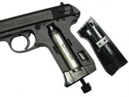 Перед началом стрельбы необходимо снарядить пистолет баллончиком с газом и шариками. Магазин вынимается при нажатии кнопки на левой стороне корпуса пистолета, а для установки баллончика необходимо снять левую щечку рукояти.
