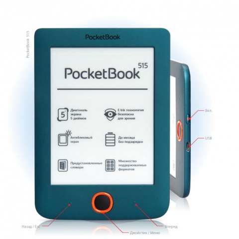 Бюджетная модель лишена модуля Wi-Fi, сенсорного управления и даже 3,5 миллиметрового разъема для наушников. Как видим, PocketBook Mini 515 рассчитан исключительно на чтение. Легкое и компактное устройство предлагает пользователю длительное время автономной работы, простой и понятный интерфейс, множество изначально закаченных книг на разных языках.