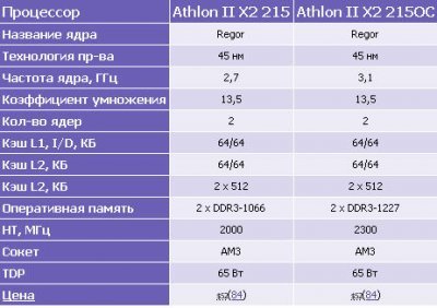 Данная модель вызывает определенный интерес своими техническими характеристиками. Она отличается от других моделей Athlon II X2 меньшей емкостью кэш-памяти L2, которая составляет 512Кбайт на ядро. Поэтому возникает необходимость подробно изучить вопрос о быстродействии процессора X2 215 в штатном режиме работы.