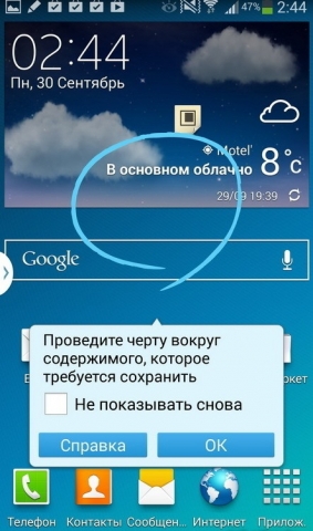 Функция «Сохранить фрагмент» позволяет сохранять любые элементы, находящиеся в данный момент на экране. Для этого необходимо выделить нужный участок экрана, смартфон автоматически определит активные участки, подсветит их и пользователь сможет сохранить выделенное в альбом вырезок.