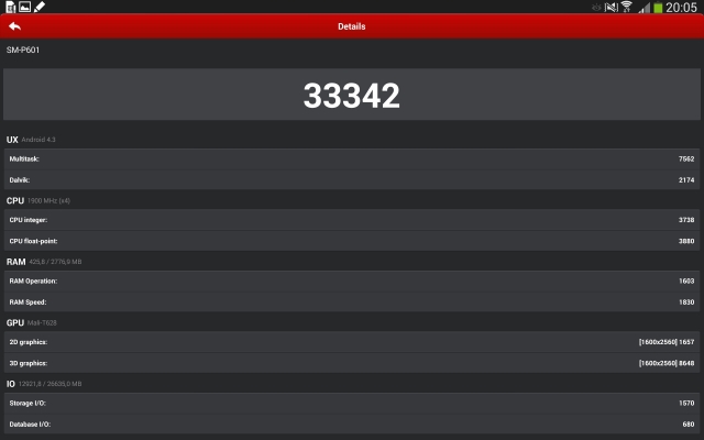 Итак, перейдем от теоретической части к практической. Давайте посмотрим, какие результаты покажет в бенчмарках Exynos 5 Octa (5420). После, сравним показатели с планшетом Toshiba Excite Write, который работает на основе NVIDIA Tegra 4, потому как, там такие же диагональ и разрешение экрана.