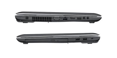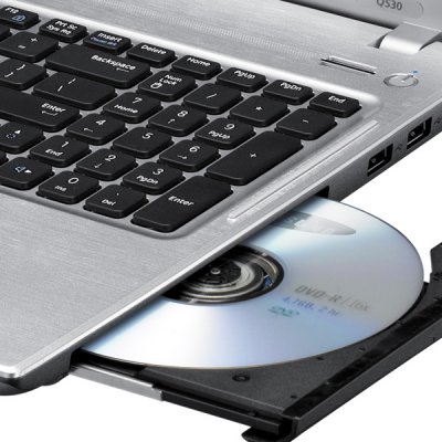Samsung Q530 обладает всеми необходимыми коммуникационными портами, при этом не имея ничего лишнего. С правой стороны расположен DVD-привод и два порта USB. Спереди разъёмов ещё меньше – лишь картридер 3-в-1. Слева расположены: 2 аудиоразъёма 3,5-мм, USB порт, порт Ethernet, HDMI, VGA и разъём для подключения блока питания. Вы сможете заряжать различные мобильные гаджеты через разъёмы USB, даже если ноутбук будет при этом выключен.