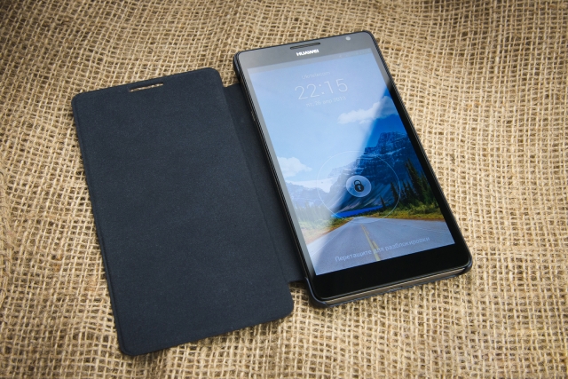 Единственным представленным в продаже чехлом для модели Huawei Ascend Mate является одноименный фирменный чехол-книжка, который (исходя из опыта эксплуатации) можно назвать очень функциональным. Аксессуар надевается на заднюю панель девайса, придавая ему ещё более элегантный вид. При этом чехол, имея жёсткие уголки, надёжно защищает смартфон в случае падения, а замшевое покрытие подкладки крышки чехла помогает держать дисплей чистым. Единственным недостатком данного чехла можно считать то, что он мешает при съёмке основной камерой, так как, закрыв крышечку, вы не видите дисплей, а её «закидывание» на тыльную панель закрывает объектив камеры - приходится держать чехол открытым на 180 градусов.