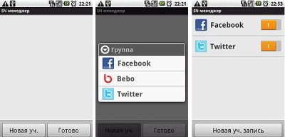 В аппарате предустановленны приложения для популярных социальных сетей: Одноклассники, Вконтакте, Twitter и Facebook.