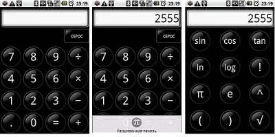 Имеет свой калькулятор с простыми тригонометрическими функциями.