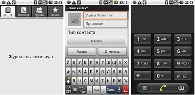 Доступ к журналу вызовов возможен с помощью левой кнопки вызова и содержит вкладки: контакты, группы и избранное.