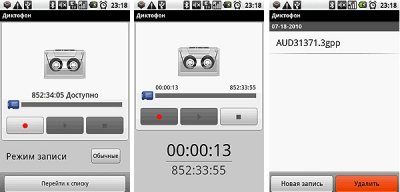 Диктофон записывает в формате 3GPP