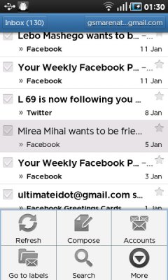 В электронной почте приложение Gmail поддерживает пакетную обработку корреспонденции, что позволяет архивировать, удалять или отмечать меткой несколько писем одновременно. Реализована поддержка нескольких аккаунтов Gmail сразу.