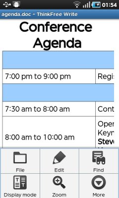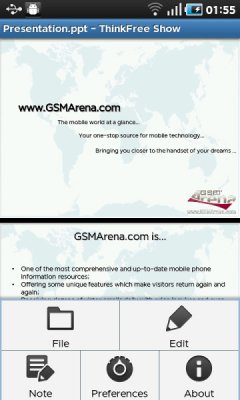 Этот аппарат ориентирован на бизнес-пользователя. И поэтому повышенное внимание производитель уделил к организационном компоненту смартфона. На I9010 Galaxy S GA установлен пакет программ ThinkFree Office для просмотра и редактирования документов. Во время панорамирования и масштабирования документов, которое происходит мгновенно, видны достоинства мощной платформы этого смартфона.